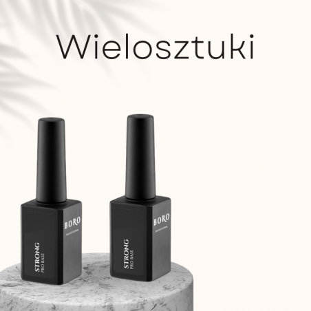W przypadku paznokci o średniej grubości bazę STRONG Base można stosować jako jedyny produkt wygładzający. Można go również łączyć z innymi bazami - użyj STRONG do wcierania i wygładź bazą maskującą, aby uzyskać dodatkową trwałość.