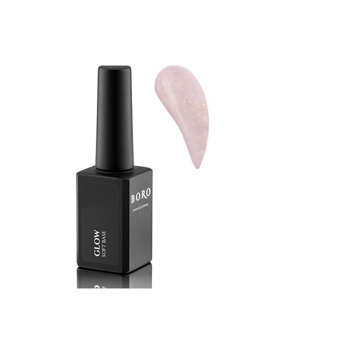 SOFT GLOW BASE – promienna, różowo-złota baza o subtelnym połysku. Idealny wybór, aby dodać paznokciom odrobinę luksusu. To baza o średniej gęstości (bardziej płynna) i średniej elastyczności, stworzona dla profesjonalistów, którzy cenią sobie łatwość i wydajność pracy. Baza jest niezwykle wszechstronna – nadaje się do różnych rodzajów paznokci i doskonale sprawdza się zarówno w pedicure, jak i manicure, ponieważ jest łatwa i równomierna w aplikacji. Dzięki niewielkiej zawartości fotoinicjatorów, baza nie powoduje uczucia nagrzewania, zapewniając komfort nawet wrażliwym klientkom.